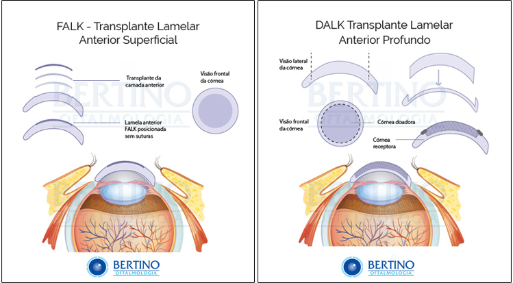 São transplantes de córnea seletivos, em que apenas as camadas patológicas serão substituídas. Apresentam menos riscos que a técnica penetrante e mais rápida reabilitação visual.
